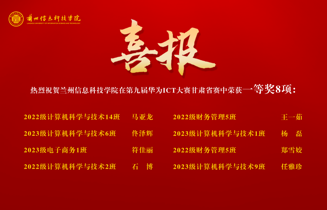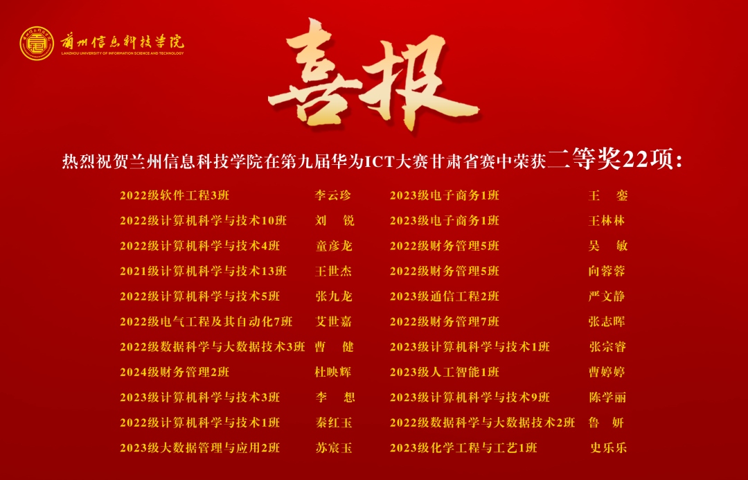近日,第九届华为ICT大赛甘肃省赛落下帷幕,兰州信息科技学院参赛团队以卓越的表现和扎实的专业知识,荣获一等奖8项、二等奖22项、三等奖17项,有力的彰显了学校在信息与通信技术(ICT)领域的教育实力和创新精神。