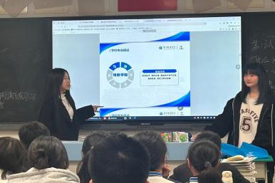 1月21日,招生宣传大使周赐铭和黄嘉乐同学回到母校惠东中学,走进课堂,播放招生宣传视频和PPT,与在场的学弟学妹们进行深入互动,积极解答报考学校和专业等方面的问题。
