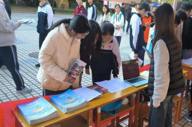 1月19日,招生宣传大使张雯越和刘泽军同学回到母校博罗中学,参加了由博罗县大学生协会和博罗中学联合举办的主题为“把我的大学讲给你听”的公益宣讲活动。此次活动吸引了来自省内外的50所高校参与,每所学校都设有专门的宣传摊位。小海螺和小海燕与学弟学妹们面对面交流互动,发放宣传册,耐心解答了学弟学妹们的报考疑问。