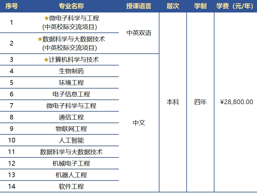 学校依托与英国、新加坡、澳大利亚等合作院校资源,选取“国际商务、微电子科学与工程、数据科学与大数据技术、物流管理(智慧物流)、网络与新媒体”5个本科专业开设中英校际交流项目;项目以学生出国留学为目标,引入新加坡合作院校优质教育资源,为学生提供英语(IELTS)强化课程及中英双语专业课教学。