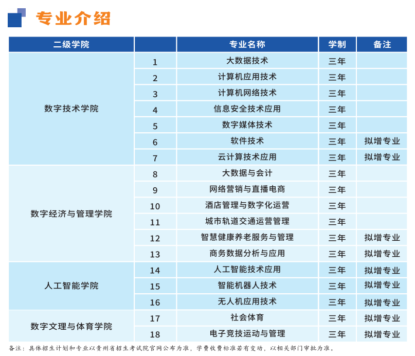 数字中国,引领未来。学校将在办学过程中积极引领和服务区域产业经济数字化转型升级发展,努力建设“数字中国”特色学校、贵州省产教融合教育先行示范院校和新型职业教育体系创新发展模范校。