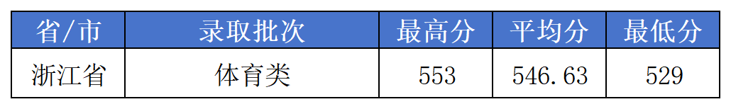 ③2024年我校在浙江体育类本科录取分数参考(综合分):