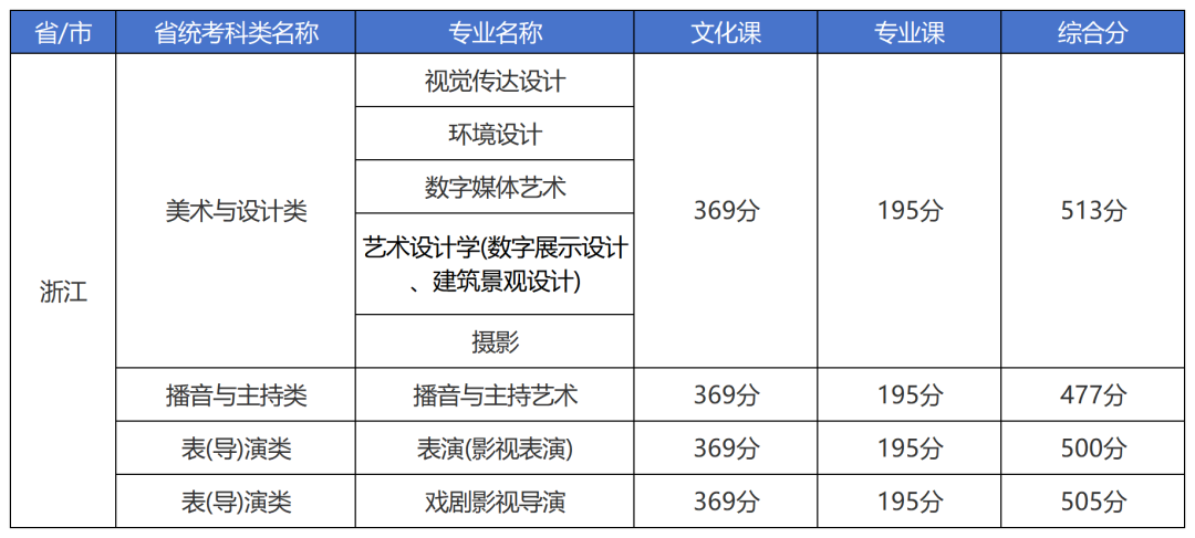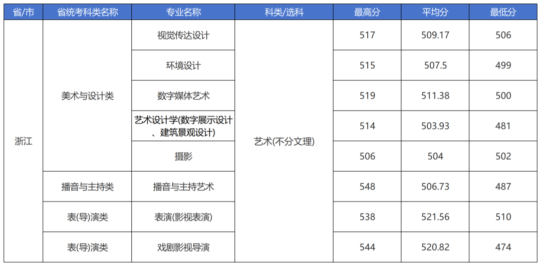 ③2024年我校在浙江艺术类本科录取分数参考(综合分):