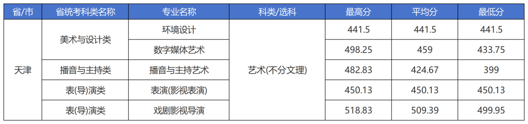 ③2024年我校在天津艺术类本科录取分数参考(综合分):