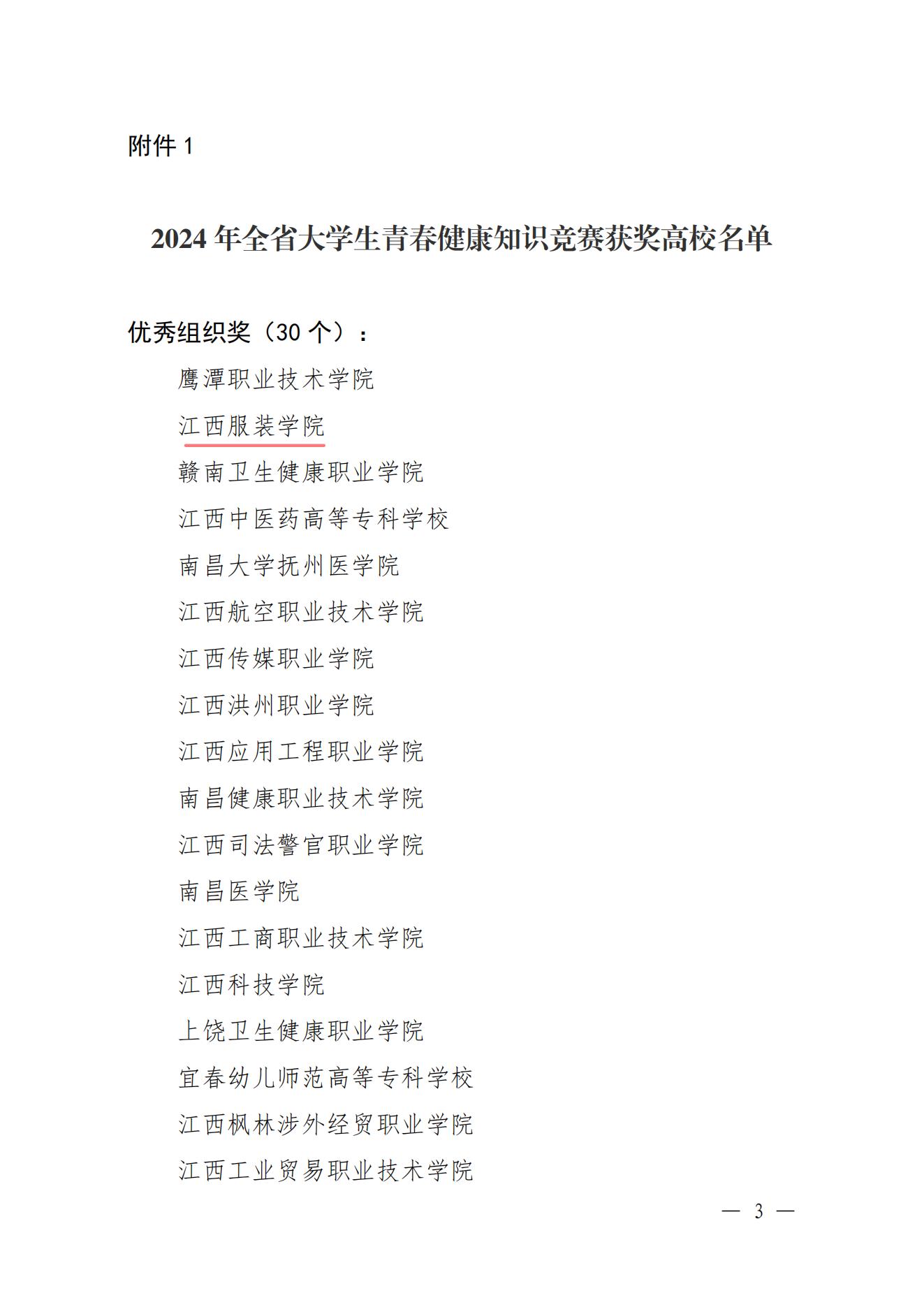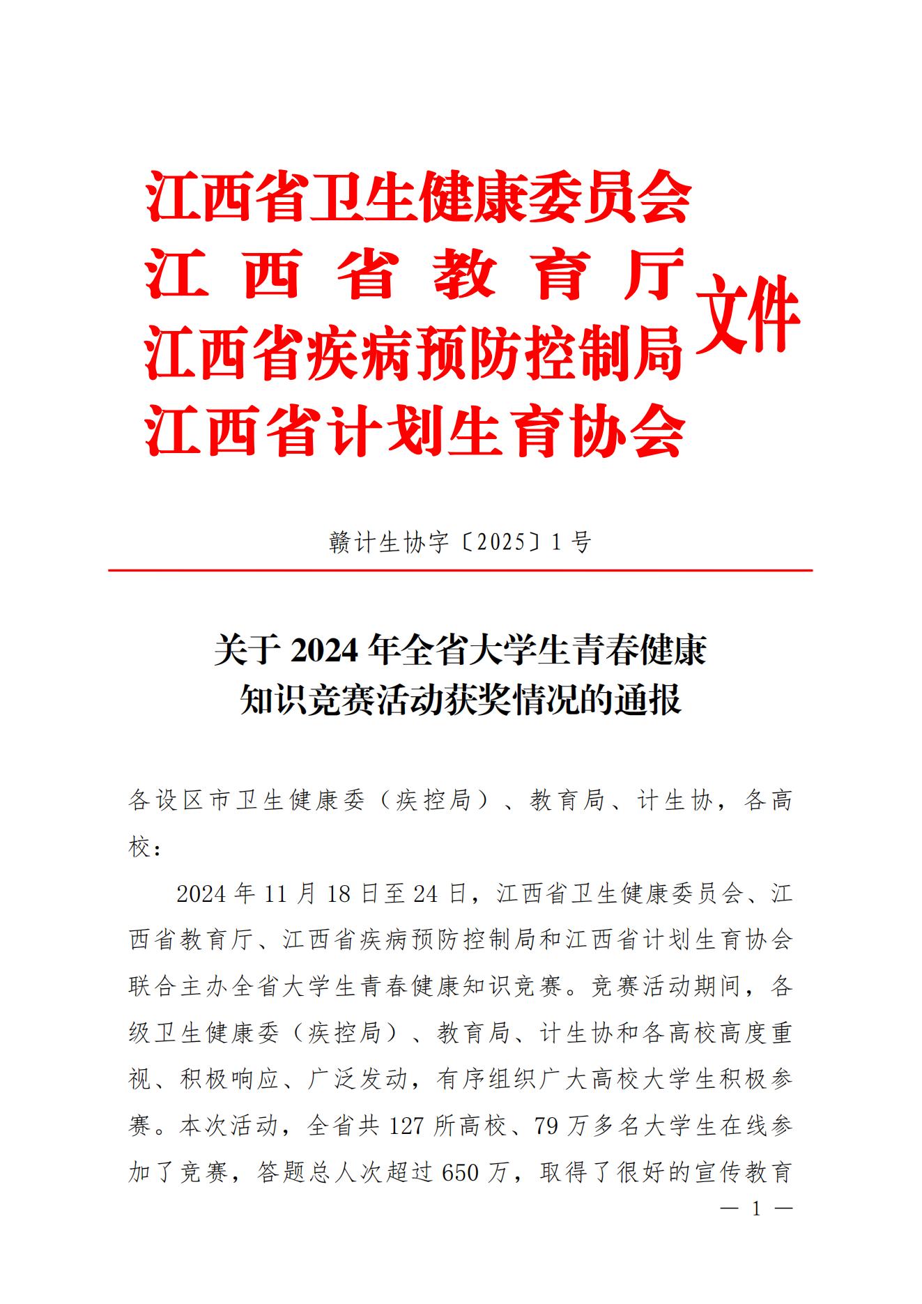 新闻中心讯(供稿/ 校团委)近日,由江西省卫生健康委员会、江西省教育厅、江西省疾病预防控制局和江西省计划生育协会联合主办全省大学生青春健康知识竞赛公布获奖名单,我校荣获最佳组织奖,最佳人气奖,团委王姗姗老师荣获优秀指导教师奖。