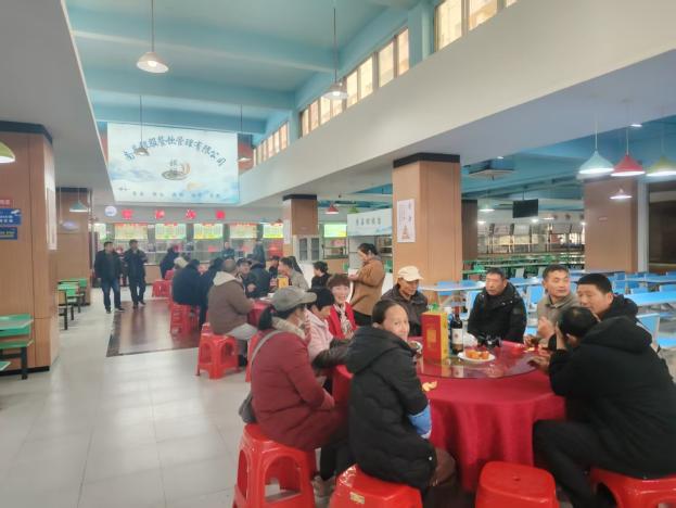 新闻中心讯(供稿/ 校工会)龙舞丰年辞旧岁,蛇迎盛世贺新春。1月28日,农历除夕,学校五食堂洋溢着浓浓的年味和欢乐的节日气氛。校党委副书记、副校长李宝君与后勤处、校工会等部门负责人,行政值班中层干部和50多位寒假坚守岗位的教职工们齐聚一堂,同吃年夜饭,互送祝福,共迎佳节。