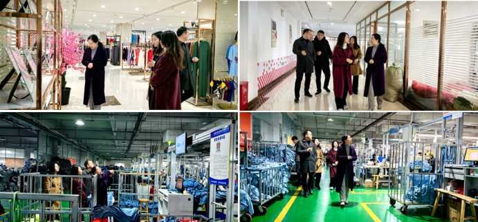 同日,林井萍一行还走访了南昌东申针织制衣有限公司和南昌市众拓制衣有限公司。两家公司均对林书记一行的到来表示热烈欢迎,并安排了公司人员陪同参观企业的研发、打版、制作和产品展示区等区域。在参观过程中,公司讲解人员详细介绍了公司的企业文化、发展历程、产品种类、岗位分布情况以及相关人才需求情况等。通过双方深入的交流,进一步了解了企业的基本情况、主营业务和人才需求,为今后的人才交流与培养奠定了坚实的基础。