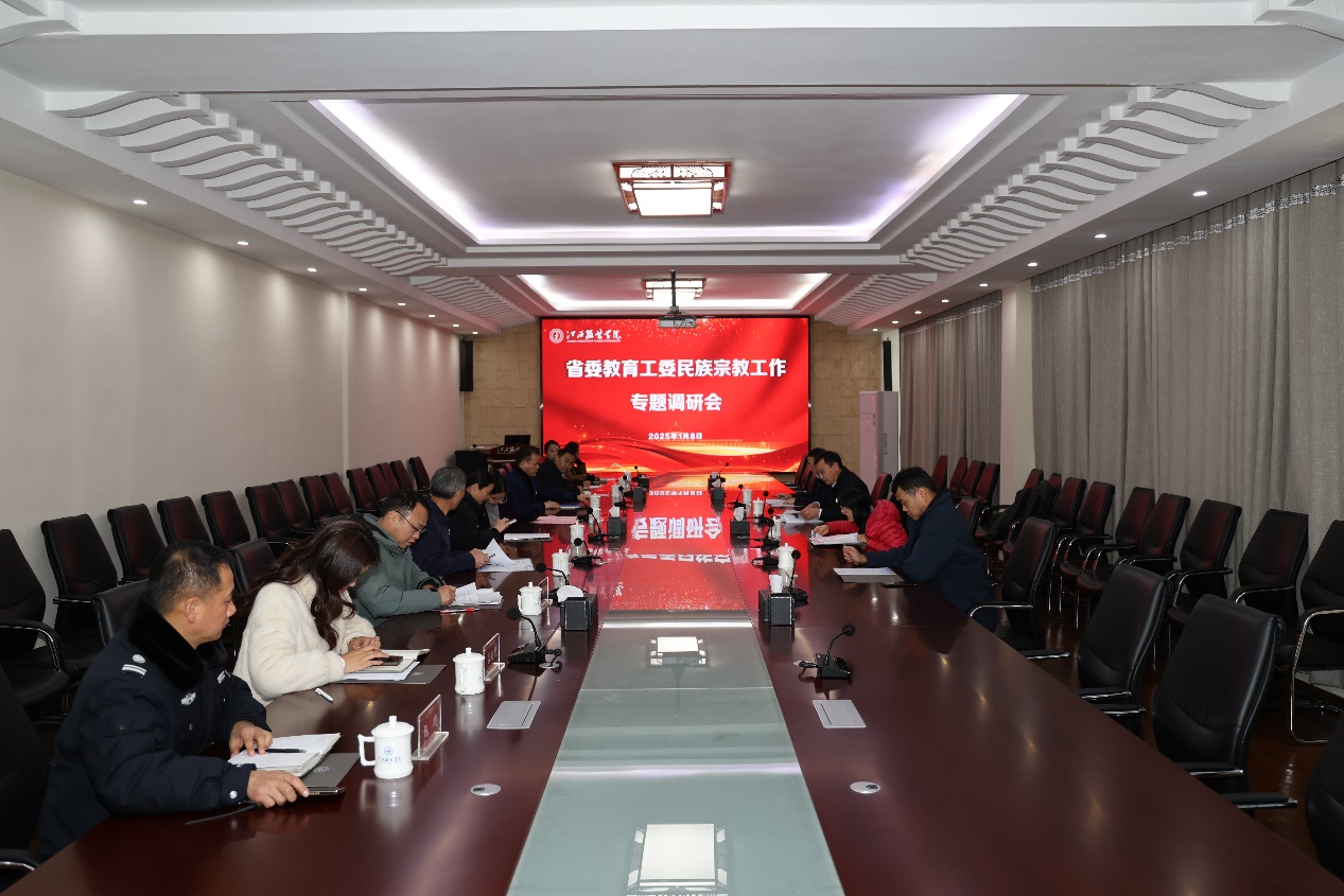 新闻中心讯(图/文 万强)2025年1月8日下午,省委教育工委委员孙照海、省委教育工委统战部部长陈蔚一行来校调研民族宗教工作。学校理事长涂燕萍、党委书记林井萍、党委副书记唐新强接待了调研组一行。会议由党委书记林井萍主持。