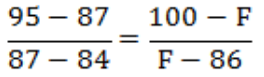 例如,考生某再选科目考试原始分数为87分,划分至A等级。当年该学科A等级原始分区间为95~84分,赋分区间为100~86分,那么该生的等级分为: