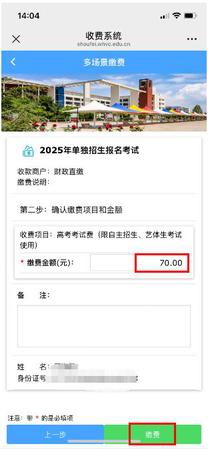 凡是2025年单独招生报名成功的考生,请在规定的时间内进行网上缴费,其缴费方式为微信缴费。根据《关于高校组织招生考试收费标准的批复》(鲁发改价格〔2024〕58号)文件的相关规定,单独招生普通类考生报名考试费70元/人,单独招生退役军人类考生报名考试费80元/人(缴费问题咨询电话:0631-5700499)。考生一旦成功缴费,因个人原因未参加考试,报名考试费不予退还。符合免试录取条件的考生,免收报名考试费。