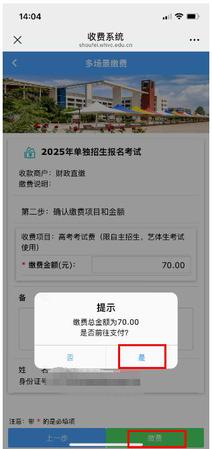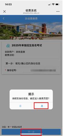三、核实身份信息无误后,点击“是”,进入缴费页面。