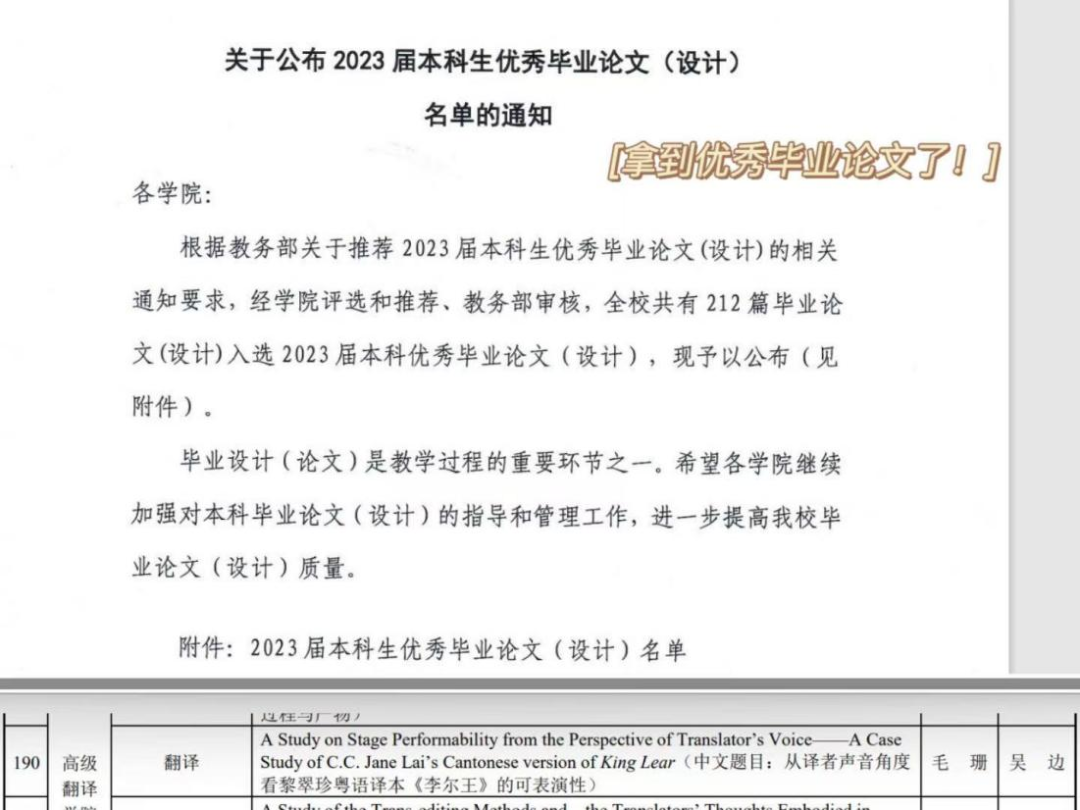 毛珊获2023届本科生优秀毕业论文