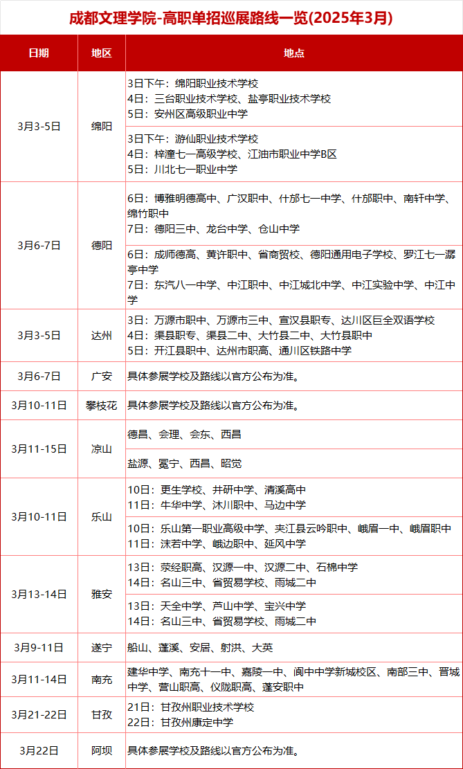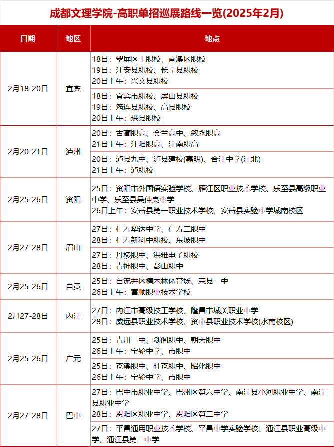注:具体时间及行程安排如有调整,请以当地官方相关公布为准,2025年招生宣传活动持续更新中,请广大考生及时关注我校官方咨讯。