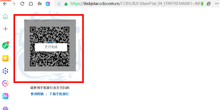4.考生缴费完成后,支付页面条码上显示“支付完成”,主页面“考试缴费”栏目中的支付信息显示“已缴费”,即完成缴费。