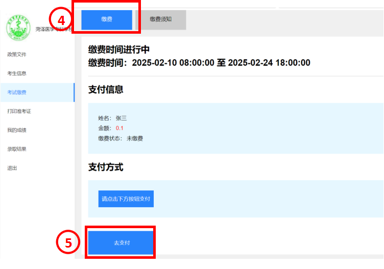 2025年单独招生和综合评价招生缴纳考试费操作流程