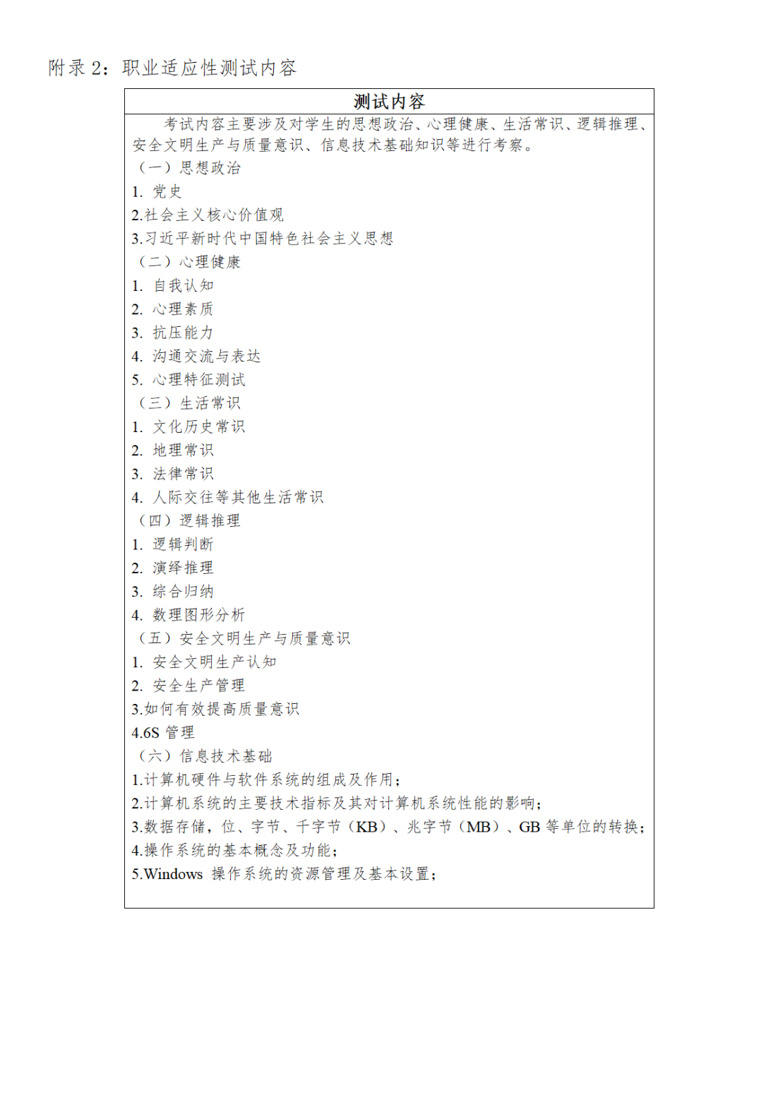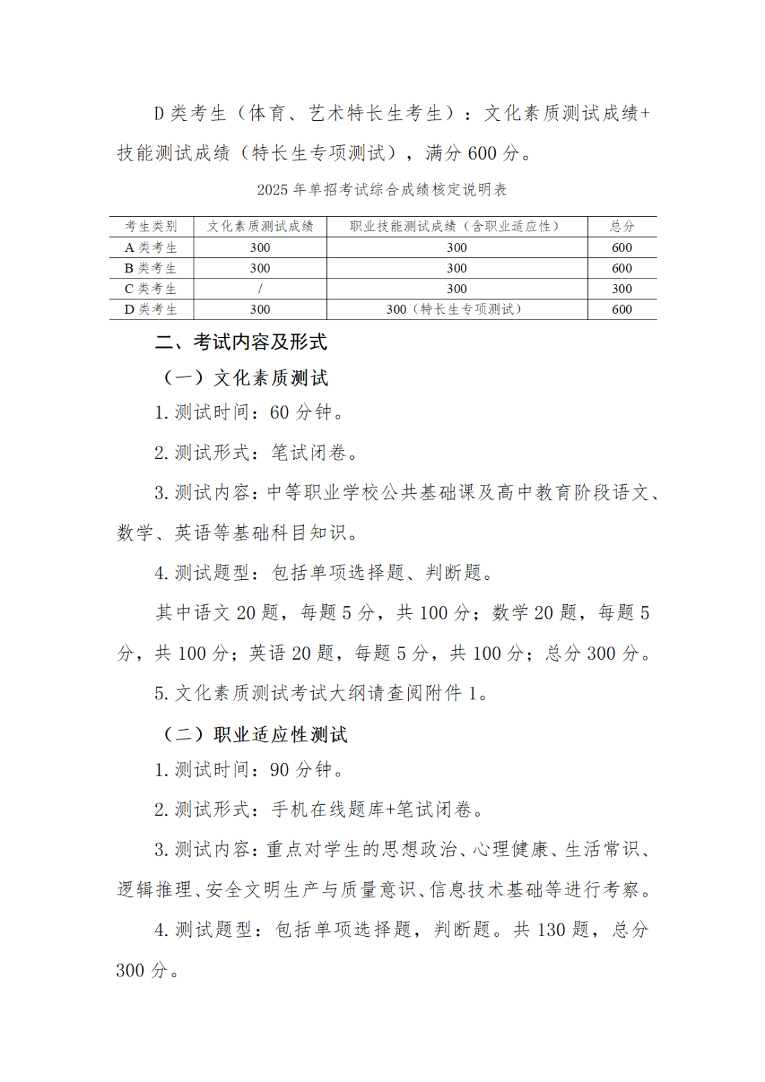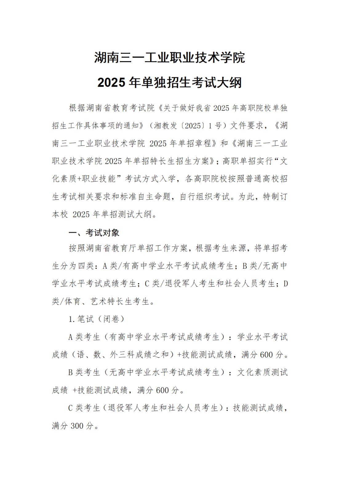 相关附件 附件2:湖南三一工业职业技术学院2025年单独招生考试大纲(职业适应性测试)(1).pdf附件3:湖南三一工业职业技术学院2025年单独招生考试大纲(职业技能测试)(1).pdf附件4:湖南三一工业职业技术学院2025年单独招生考试特长生专项测试考试大纲(1).pdf附件1:湖南三一工业职业技术学院2025年单独招生考试大纲(文化素质测试)(1).pdf