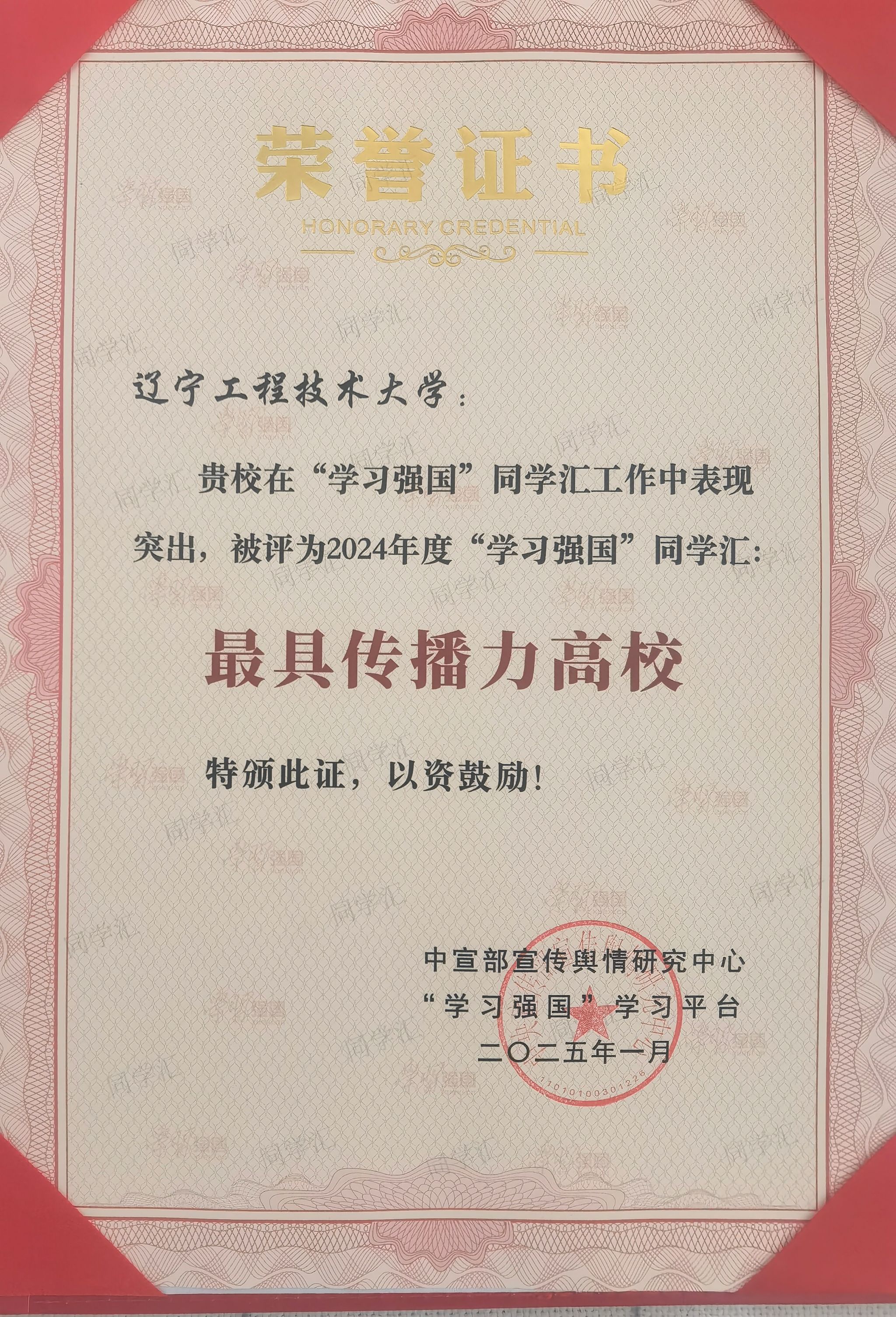 回顾2024年,我校在“学习强国”学习平台的表现十分亮眼。“辽宁工程技术大学”学习强国号持续在同学汇高校前50强排行榜中名列前茅,全年共有多个作品被推荐至“学习强国”首页展示,同学汇年度访问量超过百万次。为增强用户粘性,学校开展十余场线上线下互动话题活动,这些活动受到广泛关注,效提升了账号的活跃度。 自入驻“学习强国”学习平台以来,党委宣传部一直致力于创新运营管理模式,不断提升信息发布量和更新频率。通过持续的努力和实践,学校的传播力和影响力显著提升。此次获奖是对我校过去一年在“学习强国”学习平台工作中所取得成绩的肯定和鼓励。 2025年,党委宣传部将继续探索创新之路,努力将“学习强国”学习平台打造成为更具特色、更具影响力的学习宣传阵地,为推动学校的高质量发展贡献智慧和力量。