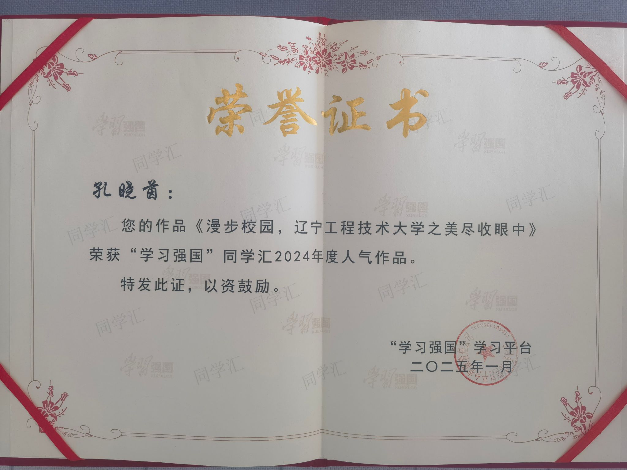 在作品方面,我校师生作品获得广泛赞誉。其中,孔晓茵老师的《漫步校园,辽宁工程技术大学之美尽收眼底》作品、孙玮瑶同学的《新学期来辽宁工大,开启一次精彩的研学活动》作品荣获“人气作品”奖,这些作品以其独特的视角、深刻的内涵和高质量的创作赢得了广大用户的喜爱和认可。