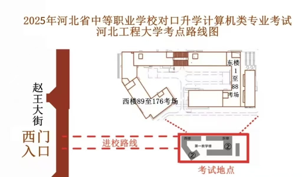 4.河北工程大学考点。理论考试时考生从学校西门进入(赵王大街),技能考试时考生从学校南门进入,不允许车辆进入。