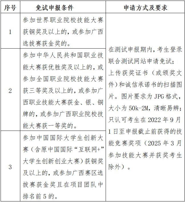 经联盟院校统一评审认定免试资格及加分,于2025年3月18-29日在广西高职高专招生网站(https://www.gxzslm.cn/)公示。