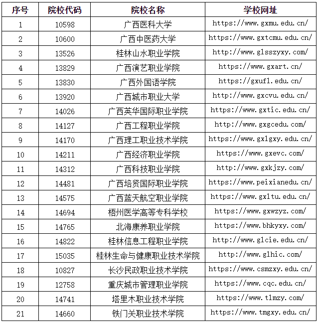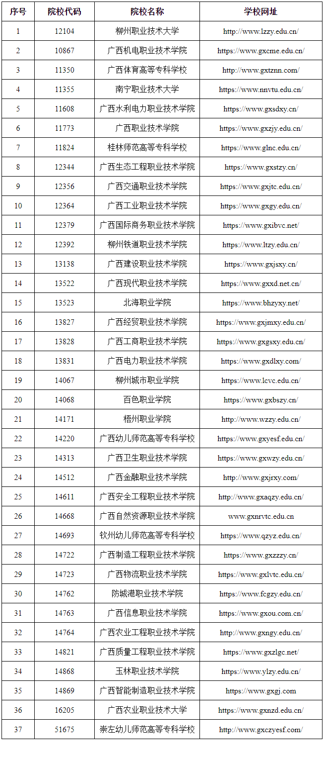 广西公办高职高专院校招生联盟2025年高职分类考试招生联合测试院校成员名单