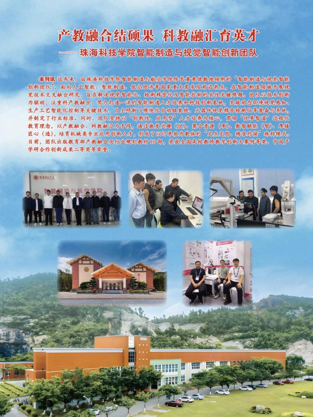 近年来,由珠海科技学院智能制造与航空学院院长黄景德教授领衔的“智能制造与视觉智能创新团队”,面向人工智能、智能制造、低空经济等国家重大需求及前沿热点,在智能制造领域开展视觉技术交叉融合研究,旨在解决视觉智能化、检测精密化及智能控制的共性关键难题。团队以技术创新为驱动,注重科产教融合,努力打造一流的智能制造人才培养和科技创新基地,突破动态环境视觉感知、生产工艺智能化控制等关键技术,自主研制了模块化自动组装线、元器件视觉精密检测仪等装备与系统,并制定了行业标准。