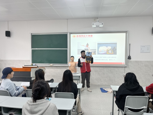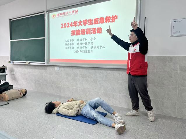 为进一步普及应急救护知识,提高校园安全防范意识和应急救护技能,2024年12月26日,后勤处在正心楼307教室组织了大学生应急救护技能培训,此次培训由珠海市红十字会主办,珠海市红十字会培训中心资深讲师张健斌和郑玲玲授课。