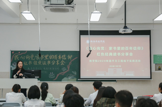 为奋进“百千万工程”,传承书信文化,商学院于11月17日,开展了《我心向党:家书里的百年信仰》红色经典读书分享会。本次活动由倪松娟老师主持,邀请退役大学生士兵郑子杉分享家书。活动伊始,倪松娟介绍书信是人们传递信息和情感的重要载体,以《我心向党:家书里的百年信仰》这本书为主,分享任弼时写给父亲的家书、黄继光致母亲和张兆致母亲这三篇家书,为同学们埋下红色种子。紧接着由退役大学生士兵代表郑子杉分享了自己从军期间的三篇家书。从这些家书中同学们学会了责任与担当,无私奉献和勇敢坚韧。历史是最好的清醒剂,让我们从家书中汲取信仰,汲取力量。