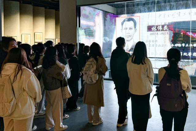 同学们参观林伟民与中国早期工人运动史迹陈列馆现场