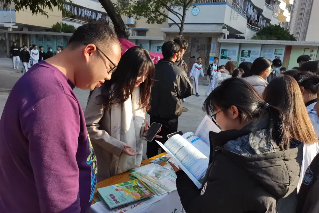2025年1月16日,黄晓东、李子鱼和许仪菲同学在台山市第一中学通过线下摆摊和进班宣讲的形式开展寒假招生宣传。