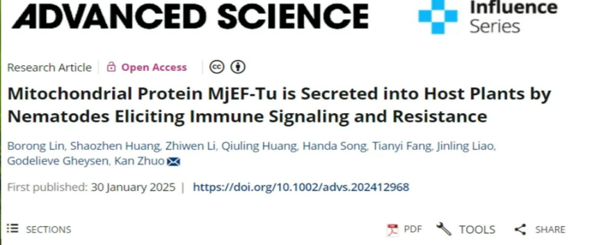 学术前沿 | 植物保护学院卓侃/林柏荣课题组发现植物线虫线粒体蛋白跨界触发植物免疫反应来源 | 植物保护学院本科生招生宣传协会