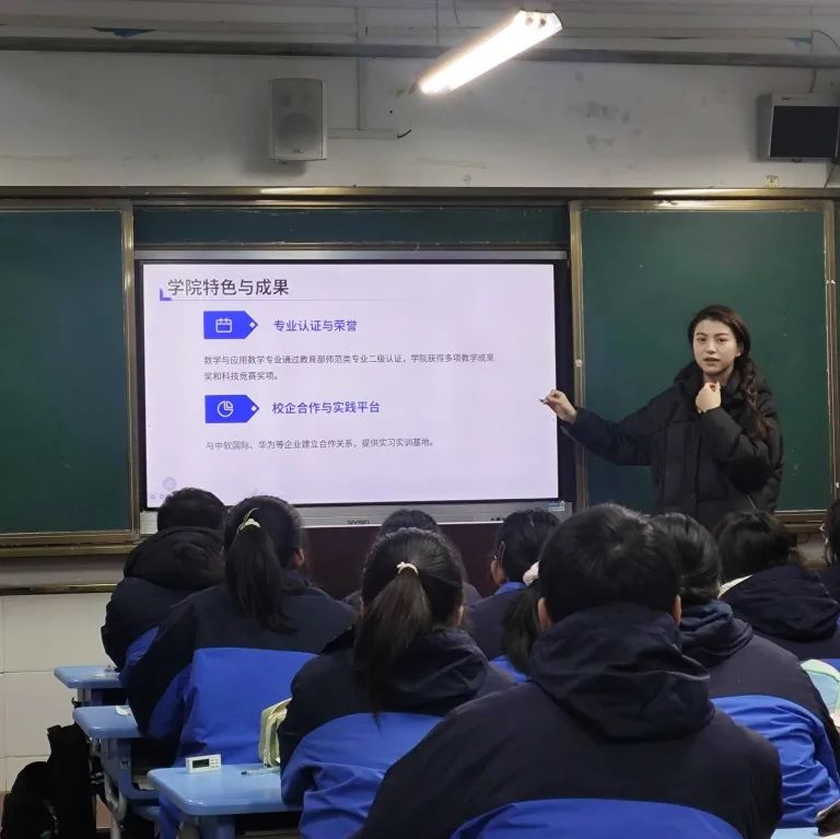 学院优秀学子们组成多个宣传小队,怀揣着对母校的感恩之情,肩负着连接高中与大学的使命,分别前往各自的母校开展招生宣传活动。宣传小队通过播放学院招生宣传片、展示PPT及宣传册、举办宣讲会,专业课程教学等形式,全面介绍了学院的办学历史、专业设置、师资力量、科研成果、校园文化和学生活动等方面的情况。同时,青年学子们还结合自身在学院的学习和生活经历,分享了大学生活的点点滴滴,为高中学子描绘了一幅丰富多彩的大学生活画卷。为了增强活动的互动性和吸引力,宣传小队还设计了问答环节和互动游戏,与高中学子进行了深入的交流与互动。他们耐心解答高中学子关于专业学习、招生政策、校园生活等方面的问题,为他们提供了实用的建议和信息。