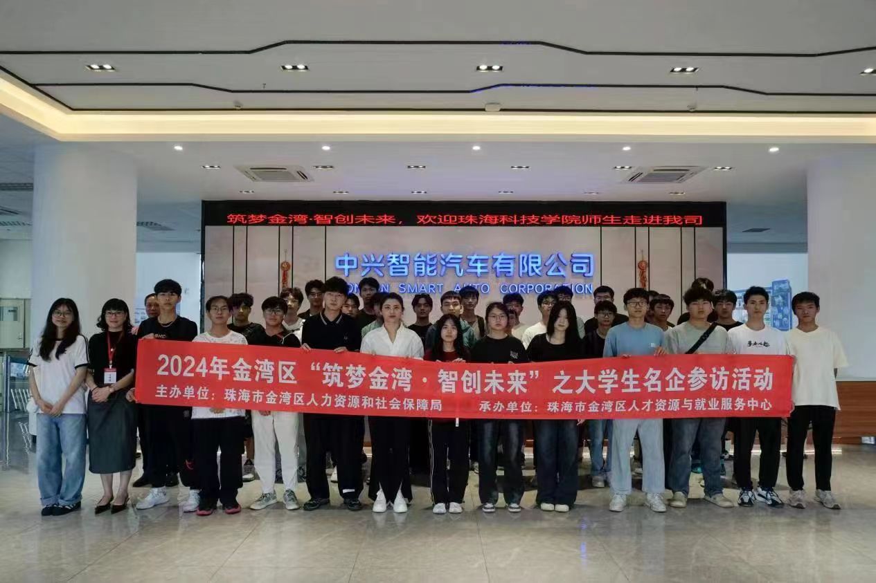 为扎实推进就业育人工作,实施精细化就创业指导服务,帮助学生了解区域产业规划与发展,明晰企业人才标准,助力更多优秀大学生留金就业创业,4月19日由珠海市金湾区人力资源和社会保障局主办,珠海市金湾区人才资源与就业服务中心承办,珠海科技学院协办的“筑梦金湾·智创未来”之大学生名企参访活动在金湾航空城规划展览馆和中兴智能汽车有限公司顺利进行。我校招生与就业处就业科科长白冰冰、智能制造与航空学院辅导员蒋昌宏老师组织30余名智能制造与航空学院学生代表赴珠海金湾中兴智能汽车有限公司和珠海金湾航空规划馆,参加了本次“沉浸式”名企参访活动。