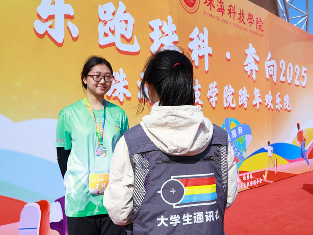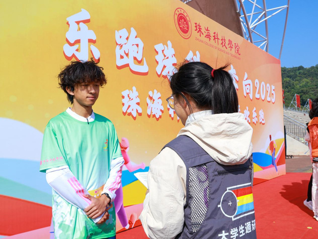 2024级电子信息工程学院梁家玮作为第一个冲过终点线的运动员,在接受采访时分享了自己的感受:“我认为本次活动的举办是非常有意义的,它不仅为参赛者提供了一个展现自己的平台,还真实地反映了大家在跑步时所展现出的最纯粹的一面,鼓励大家运动起来。”此外,他期待在未来能作为珠海科技学院田径队的一份子参加广东省大学生运动会,并力争取得名次,为校争光。