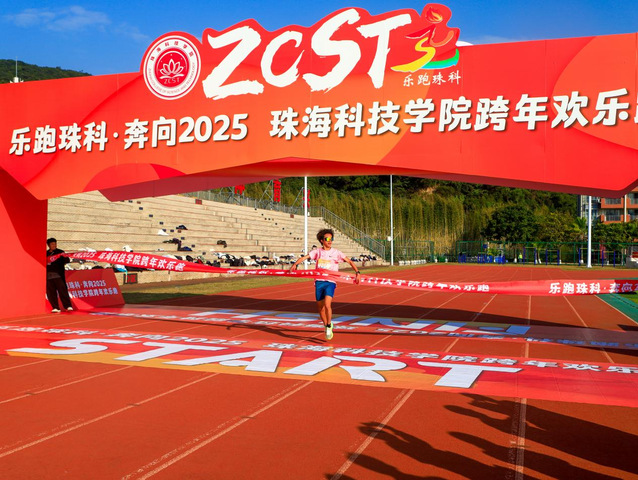 终点处,一个个奋力冲过终点线的身影在欢呼声中获得了纪念奖牌和精美礼品。最后,全体人员齐声喊出对2025年的祝福,这一幕构成了一道独特的风景线,成为了独属于珠科学子的跨年仪式。