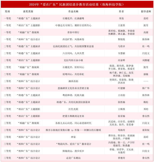 近日,经广东省教育厅公布,我校在2024年“爱在广东”民族团结进步教育活动中共获奖21项,创历史新高。其中一等奖4项、二等奖7项、三等奖10项。