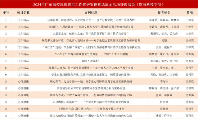 广东高校思想政治工作优秀案例推选展示活动评选结果(珠海科技学院)