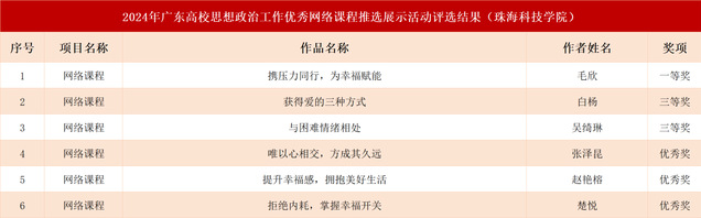 广东高校思想政治工作优秀网络课程推选展示活动评选结果(珠海科技学院)