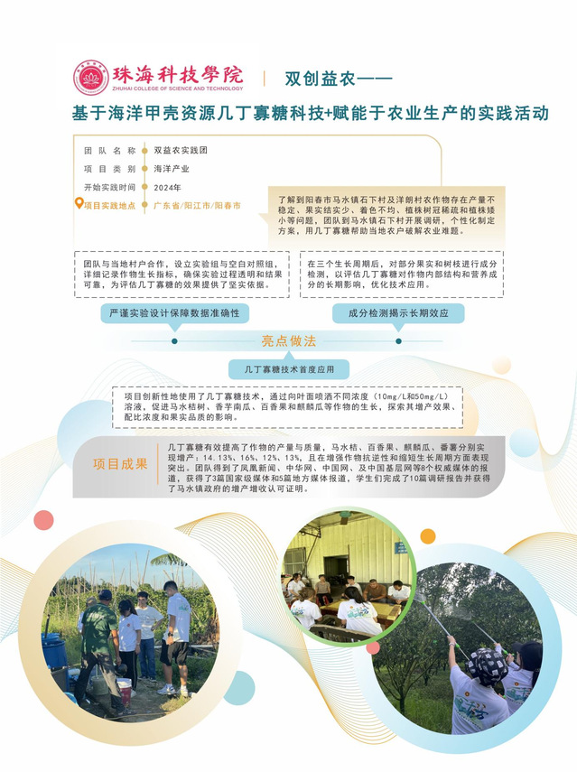 我校“双创益农——基于海洋甲壳资源几丁寡糖科技+赋能于农业生产的实践活动”实践队项目入选广东省2024“百千万工程”突击队行动100个优秀品牌项目案例集
