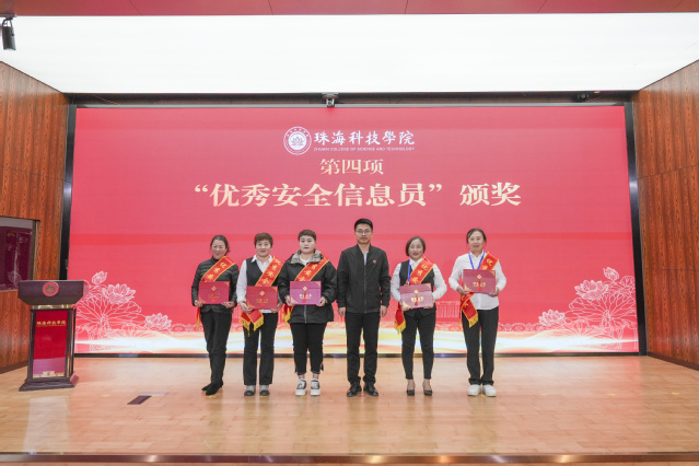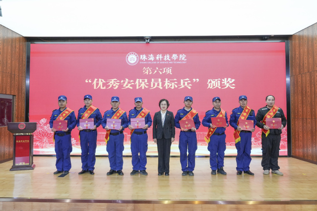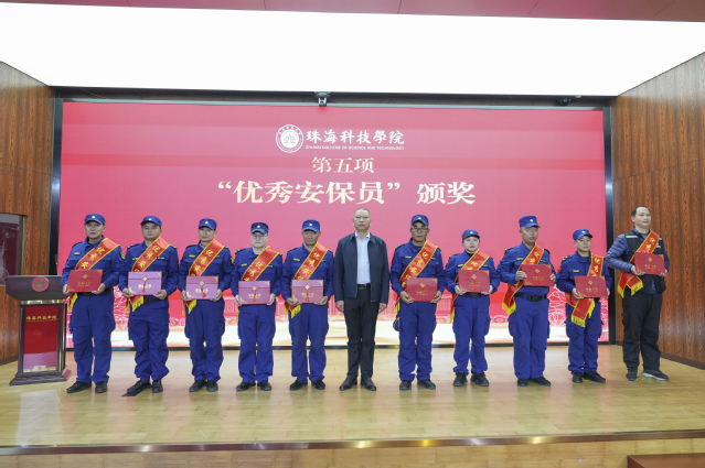 2024年,学校安保工作坚持落实预防为主、防治结合、群防群治工作原则,各项工作有序开展,校园安全形势总体良好,整体安全稳定。全校安保人员以高度的责任感和良好的职业道德投入工作,为师生提供优质的安保服务,在岗位执勤、巡防巡查、应急处突等各方面的工作形象和能力都取得了较好的成绩,特别是在监控中心值班值守、查获异常人员、发现违规宣传品、协助公安机关开展工作等方面,有效预防和减少了安全事件的发生,为学校整体平安稳定做出了贡献,也涌现出一批优秀的安保人员。党委委员、纪委书记、副校长黄学寿及其他与会领导分别对“先进安保集体”“最美珠科卫士”“优秀安保员标兵”“优秀安保员”“优秀安全信息员”进行颁奖。