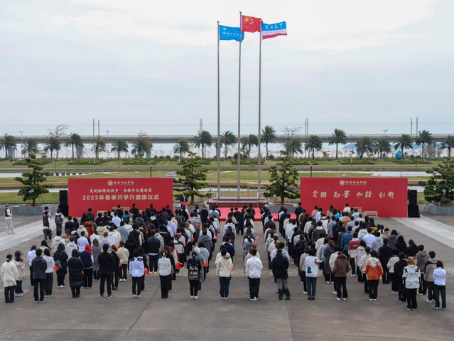 青衿向学朝气盛,正是扬帆奋进时。2月24日,学校于图书馆升旗台顺利举行“灵蛇献瑞迎新岁奋楫争先谱新篇”春季开学升国旗仪式。学校党委委员、纪委书记、副校长黄学寿,学生处处长高英杰,保卫处处长朱永康,党委宣传部副部长汤义和出席本次升旗仪式,各二级学院团委书记、副书记,以及在校生代表参与本次升旗仪式。本次升旗仪式由校团委副书记陈殿藩主持。
