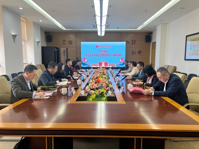 12月13日下午,浙江工业大学之江学院副院长王林祥一行到访我校。学校党委委员、副校长程春梅,科研处处长赵成国及相关二级学院负责任人等热情接待了来访人员,并在图书馆行政区325会议室进行座谈交流。会议由赵成国主持。