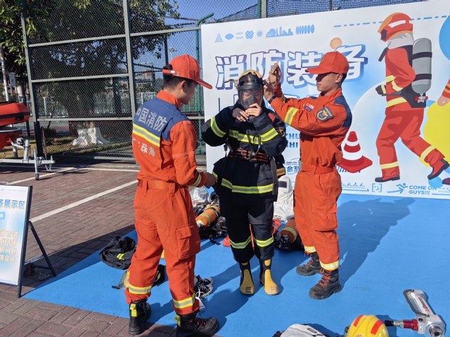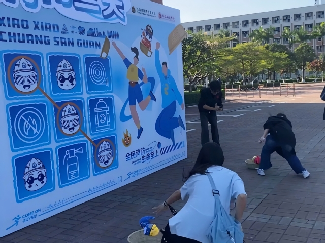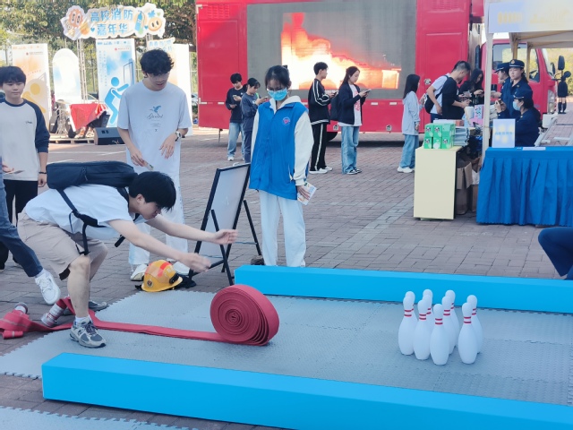 随后,“高校消防嘉年华”主题活动在音乐舞蹈学院广场开展,活动现场设立了消防装备展示区、灭火器实操、珠海科技学院学生特勤中队装备展示、“灭火指挥家”“水带一击”“极速60秒”等多个互动项目,广大师生踊跃参与,现场气氛十分热烈。