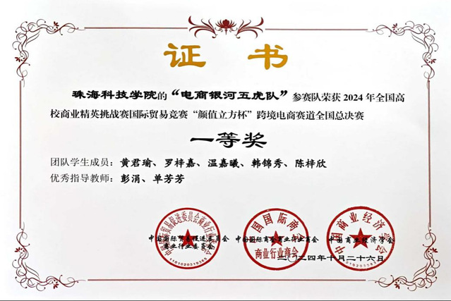 近期,由中国国际贸易促进委员会商业行业委员会、中国国际商会商业行业商会和中国商业经济学会主办的全国高校商业精英挑战赛国际贸易竞赛“颜值立方杯”跨境电商赛道全国总决赛在线上成功举办。共有来自全国29个省300多所高校的4000余支队伍报名参赛,经过层层选拔,1000余支队伍进入国赛。我校金融与贸易学院组织的5支队伍经过知识赛、省赛选拔、国赛角逐,喜获佳绩。由李佳乐、谢紫柔、罗佳、蔡雁蓉、陈泽莹组成的“WashingClub队”,由黄君瑜、罗梓嘉、温嘉曦、韩锦秀、陈梓欣组成的“电商银河五虎队”,由马键琳、冼梓煊、陈颖盈、林欢欢、杨乐乐组成的“多巴胺护卫队”,由朱羚莉、莫琳、曾尹、陈佳雯组成的“Let's 购队”,由李恵滢、黄绮漩、张绣雯、唐怡雯、关莉霖组成的“要拿回属于我的一切队”在激烈竞争中脱颖而出,凭借过硬的专业实力和团队协作,全部荣获国家级一等奖,我校获得最佳院校组织奖。