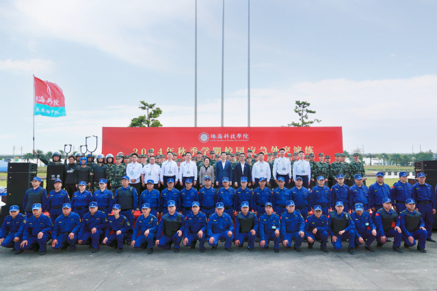 随着校党委委员、纪委书记、副校长黄学寿的一声令下,2024年秋季校园应急处突演练正式拉开帷幕。本次演练共设置“校园防冲撞应急处置演练”“防暴警棍盾牌操表演”“校园防砍杀应急处突演练”和“校园火情事件联动处置演练”四大演练项目。