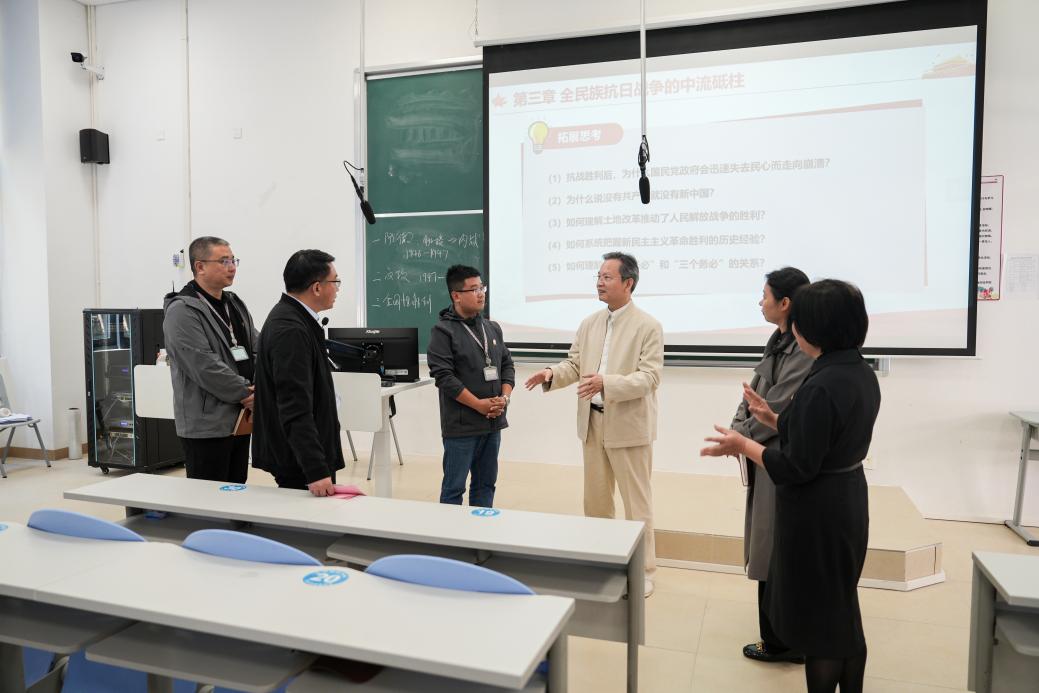 刘鸣认真听取了授课内容,全面了解思政课教师课堂教学动态,对两位老师的教学方法和课堂效果给予了肯定评价,并提出了指导意见。