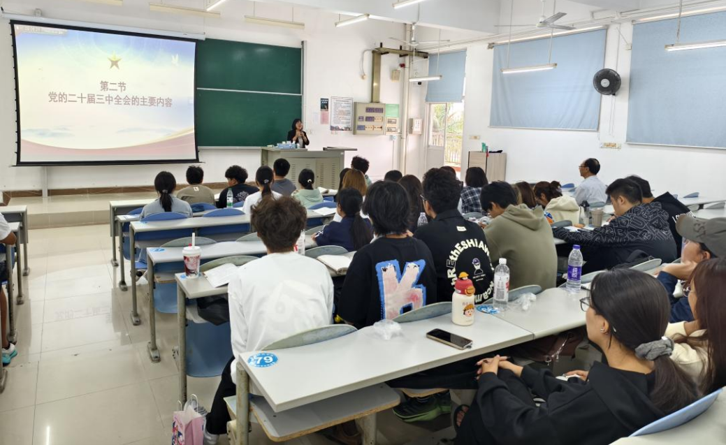 刘庄老师讲授“以中国式现代化全面推进中华民族伟大复兴”章节,以生动的案例和深入浅出的语言系统讲解了中国式现代化的内涵、特征和伟大意义。戴学英老师围绕着“认真学习党的二十届三中全会精神立志成为担当民族复兴大任的时代新人”专题内容,带领同学们进行深入学习,课堂总体氛围良好,同学们参与度较高。