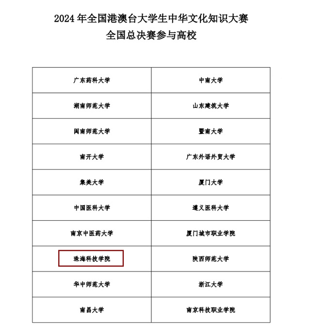 11月9日至10日,2024年全国港澳台大学生中华文化知识大赛全国复赛在线上成功举办,来自全国近200所高校的600余名学生在云端展开激烈竞争,争夺20个进入全国总决赛的宝贵席位。近日,比赛组委会公布全国总决赛入围高校名单。我校2024级学生黄志锋、谢心怡和许耀林组成的“骐骥队”表现出色,以小组第一名的成绩和全国前二十强的佳绩,成功获得了晋级总决赛的资格。