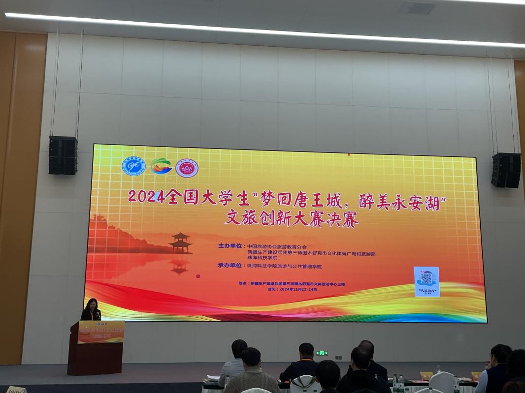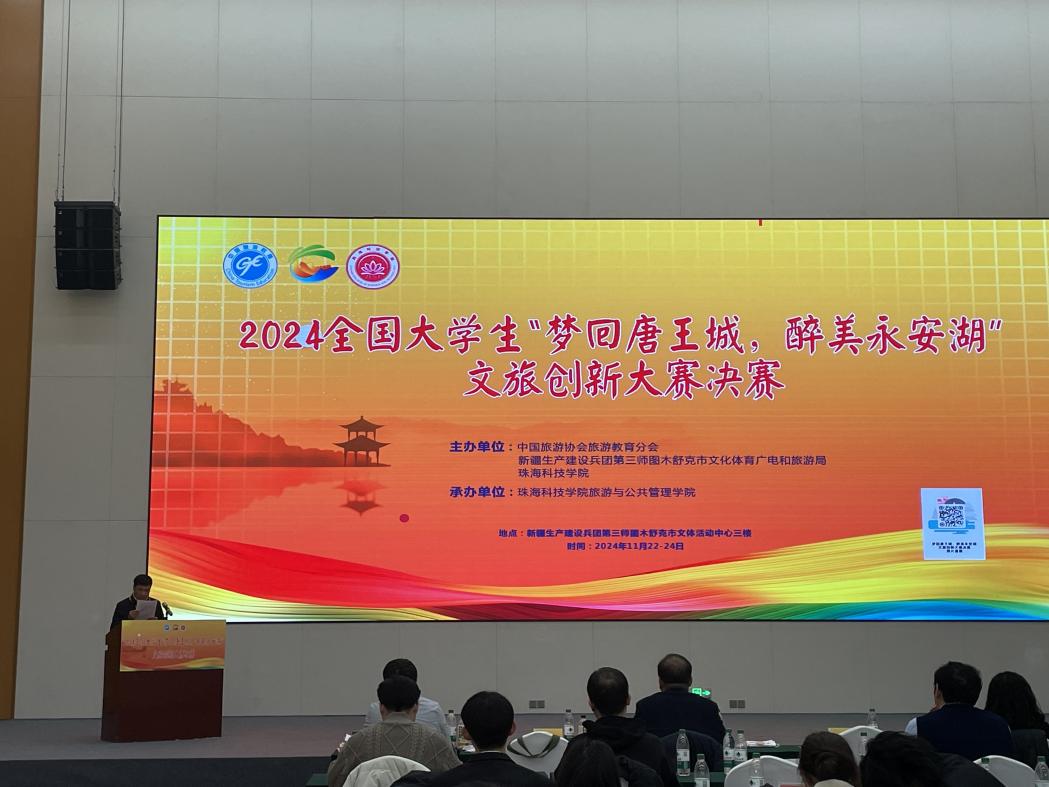 11月24日,由中国旅游协会旅游教育分会、第三师图木舒克市文化体育广电和旅游局、珠海科技学院联合主办,珠海科技学院旅游与公共管理学院承办的2024全国大学生“梦回唐王城,醉美永安湖”文旅创新大赛顺利举办。