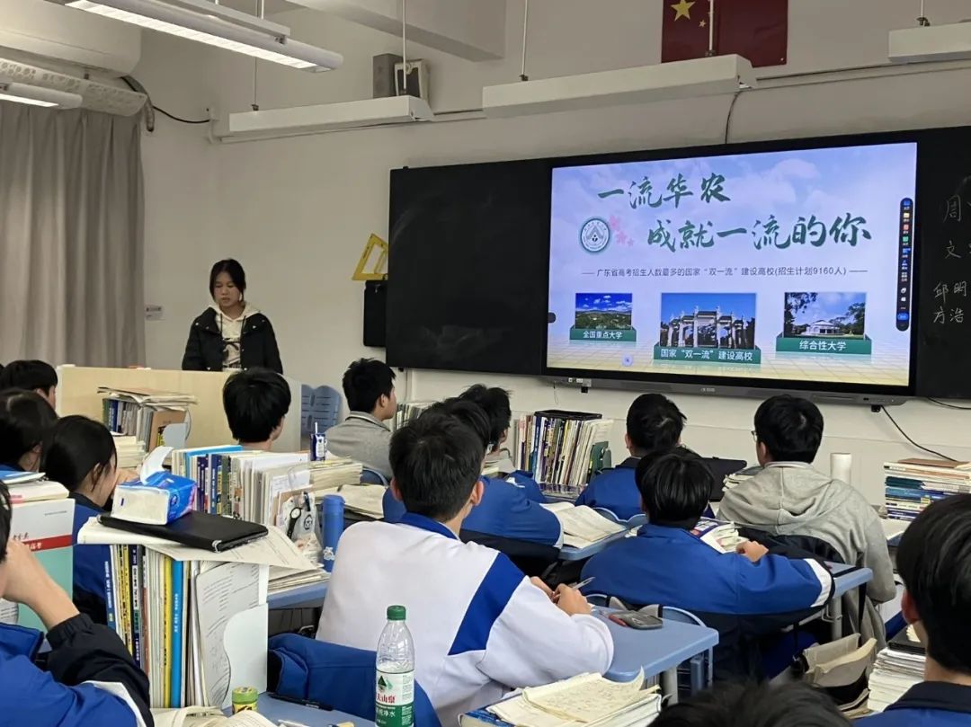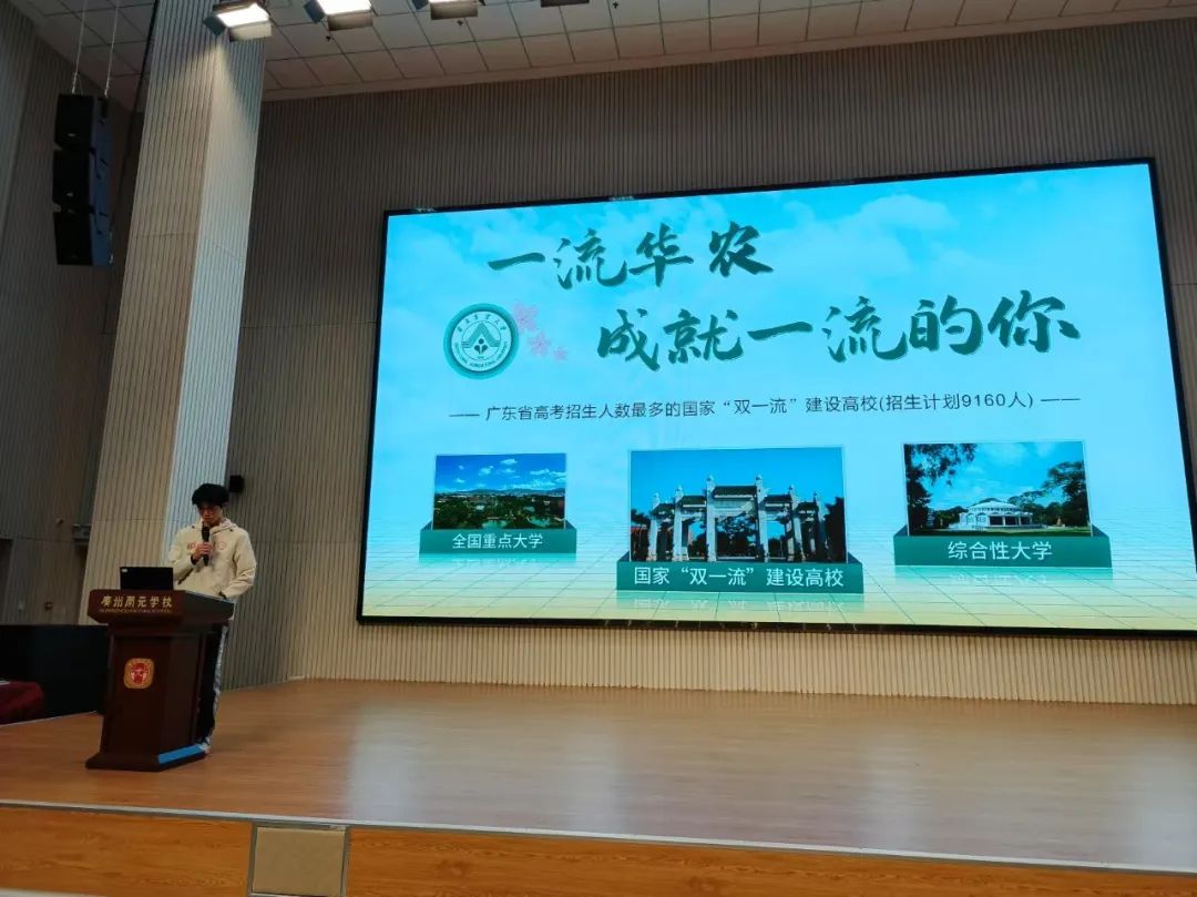 在广东华侨中学,招生宣传队伍精心准备了一场别开生面的宣讲会。他们不仅播放了精彩的校招生视频,让同学们直观地感受到华农的校园魅力,还通过PPT详细介绍了学校的优质资源和雄厚师资。一位参与宣讲的同学分享道:“我们希望通过这些生动的展示,让高三的学弟学妹们提前感受大学的氛围,激发他们对未来的憧憬。”